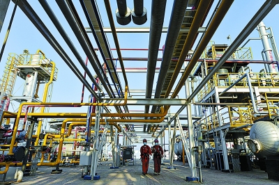 天然气保供关键时期,西北油田采油一厂油气处理部加密巡检,防止管线、设备冻堵,全力保障天然气供应。图为1月5日,9区净化站员工在巡查天然气处理设备。杜宗军 摄 赵春国 文