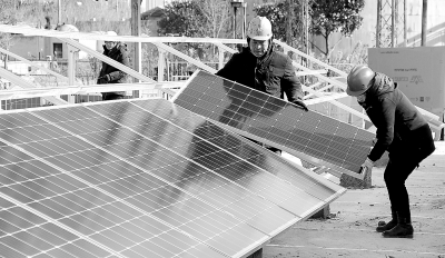 1月7日,扬子石化子公司清江石化光伏发电扶贫项目工程进度接近尾声。该项目为江苏省扶贫工作组牵头、清江石化与淮阴区三堡村结对共建的光伏发电扶贫重点项目,建成后将为清江石化的聚丙烯装置提供日常生产用电。企业每月将置换出来的电费支援淮阴区三堡村的扶贫工作。图为设备安装现场。杜 平 摄