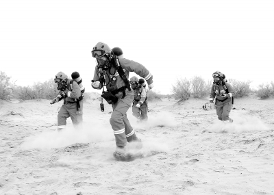 1月8日,西北油田治安消防中心开展空地联合荒漠智能化救援应急演练,采取无人机热感成像仪、GPS手持设备与气防人员地面搜救结合的方式,进一步提升救援能力。图为气防员手持GPS设备搜救。杨东辉 摄