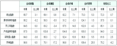本周CCPI综合指数为68.0,比上周上升4.0。各分项指数与上周比:原材料库存指数上升0.9,开工率指数上升6.9,产成品库存指数下跌0.3,采购信心指数上升3.4,开单指数上升1.3。 说明:为了更好地掌握和预测石化行业运行动态,化工销售设立了 “化工产品采购指数(Chemical Customer Purchasing Index,CCPI)”, 通过对化工行业下游样本客户的开工情况、库存情况、开单情况、采购信心等关键环节进行定量监测,来预测客户的采购需求,是一个综合性的量化指标体系,共涉及化工样本客户535家、化工下游行业76个、27个大类产品。 主要指标计算逻辑如下:综合指数=50%×下游开工率指数+10%×开单指数+15%×采购信心指数+15%×(100-原材料库存指数)+10%×(100-产成品库存指数),各分项指数由报告期数据比基期数据得出。其中基期数据参照各产品各行业正常运行情况确定,当下游运行正常时,各分项指数为100,综合指数为75。