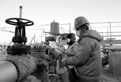 受强冷空气影响,江汉油田清河采油厂所在地区气温降至零下18摄氏度。员工果断采取行动,做好各项应急准备。图为员工对设备进行加药保护防止冻凝。徐清洲 摄