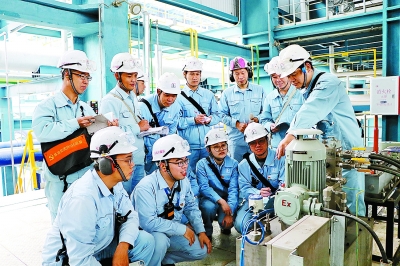 张亚培 张 博 刘滢萱/文 “在控制氢耗的基础上,努力提高煤制氢和重整装置的氢气产率,做大外购渣油原料,优化渣油进厂物流方案。”1月20日,在茂名石化新装置优化工作会上,大家正在讨论浆态床渣油加氢装置的优化工作,提出又一轮的优化方案。 像这样的新装置优化工作会,茂名石化每周至少开两次。全球最大、国内首套浆态床渣油加氢装置自2020年12月31日成功开车后,怎样优化装置运行,发挥装置最大潜力,成为公司重要的研究课题。 浆态床渣油加氢装置设计轻油转化率高达94%,“吃”最差的渣油,产出最优质的洁净油品,这套装置被大家称作“钢铁奶牛”。茂名石化瞄准新装置投产的契机,滚动寻找浆态床渣油加氢装置投产后的炼化一体化最佳运行模式,精细制定统筹措施。 1月3日,重油加氢车间员工抽查浆态床渣油加氢装置减压塔顶回流罐水样,发现油水分离效果不好,影响装置平稳操作。车间工艺组立即研究制定解决措施,决定增加一条回水旁路,跨过回流罐。 为确保质量和进度,他们通宵监护作业。1月4日18时,在车间骨干的密切配合下,仅用10分钟就完成了管线法兰连接,经采样分析减压塔顶回流罐油水分离效果好。 目前,装置干部员工继续发扬铁人精神,精心操作、精细巡检,同时组织对影响装置优化创效的难题进行攻关,确保装置安稳运行,想方设法争取实现一季度开门红。