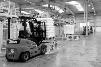 2020年,中安联合煤化有限责任公司优化产品区域流向,实施“一品一策”销售策略,加大安徽市场培育力度。两聚产品在安徽市场投放比例从28%提升至90%以上,销量超过72万吨。图为中安联合员工运送产品至库房。赵天奇 摄