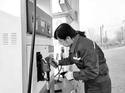 山西晋中石油根据本地疫情形势,全面加强库站一线疫情防控措施,紧盯重点区域、关键环节、重要点位,坚决筑牢疫情防控屏障,切实保障员工及消费者身体健康,确保经营工作有序开展。图为晋中石油中心加油站员工在给加油枪消毒。