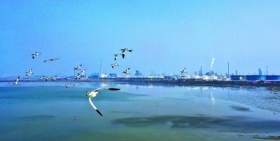 自去年6月投产以来,中科炼化践行绿水青山就是金山银山理念,全面严格执行最新最严的环保标准,污染物排放全部优于国家标准。厂区外,鱼翔浅底,鹭鸟嬉戏,自然生态得到全面保护。图为1月11日成群鹭鸟在厂外海域嬉戏。 聂冬生 摄