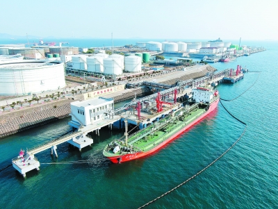 近日,在广州石化华德公司新建5000吨级燃料油码头,万鑫油8号油轮顺利完成燃料油卸货,标志着新建码头进入生产调试阶段,预计今年6月投用。新建码头是华德公司打造华南地区燃料油配送中心的关键配套项目,投用后将有效消除燃料油小吨位船舶出货瓶颈。图为万鑫油8号油轮靠泊新建码头。冉升辉 摄 黄敏清 文