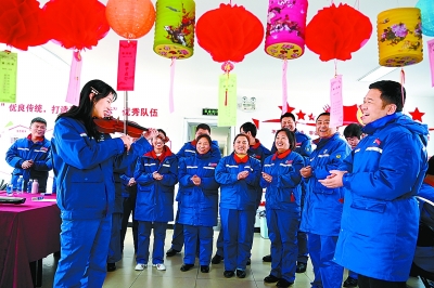 北京石油切实做好员工就地过年服务工作,组织留京的外省籍员工开展猜灯谜、健身等丰富多彩的文体活动。图为2月15日,公司员工薛洁为同事拉小提琴。 本报记者 胡庆明 摄 杨 蕊 文