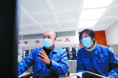 夏东明 图/文 2月11日深夜,齐鲁石化热电厂锅炉车间轰鸣的厂房内,赵忠洪正带着江雨晨巡检。 赵忠洪是锅炉车间运行丁班班长,今年59岁,已经在锅炉岗摸爬滚打了37个年头。赵忠洪工作经验丰富,大家都称他是锅炉的“活地图”。徒弟江雨晨去年大学毕业入厂,学习能力强,干起活儿来一点儿也不含糊。赵忠洪总夸奖她:“小姑娘灵透,学东西有股子韧劲。” 在8号锅炉旁,赵忠洪停下脚步,顺手拿起听棒递给江雨晨:“来听听轴承的声音。” “耳朵里嗡嗡的,各种声音分辨不清。”俯身起来,江雨晨脸上有些无奈。 “正常应该是低低的呜呜或嗡嗡声,很流畅。要是有尖锐的吱吱音或其他不规则的声音,就一定得注意。”赵忠洪耐心解释。 “好,再听一遍。”江雨晨又拿起了听棒。 “看火的时候要侧身,注意喷头结焦情况……”从油枪平台到送风机区域再到制粉间,一路上,赵忠洪说、江雨晨记,师徒俩在这趟巡检路上走走停停。 明年,赵忠洪就要退休了。他说自己有些着急,总觉得还有很多事要做。看着江雨晨认真学习的样子,赵忠洪默默地说道:“我得把自己的经验尽快地传授给年轻人,把我们的企业建设得更好!” 图1:赵忠洪给江雨晨介绍锅炉燃烧情况。 图2:赵忠洪给江雨晨讲解锅炉系统工艺流程。 图3:春节期间,赵忠洪和老伴邀请江雨晨来家里一起过年。