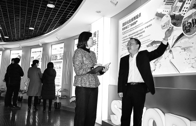 2月25日,刚刚回国的夏鹏(右)向即将启程的马光介绍中国石化润滑油(新加坡)有限责任公司的业务情况,两人交接相关工作。 本报记者 胡庆明 摄