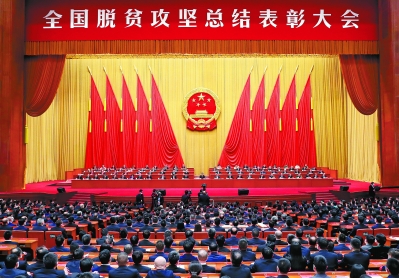 全国脱贫攻坚总结表彰大会在京隆重举行习近平向全国脱贫攻坚楷模荣誉称号获得者等颁奖并发表重要讲话李克强主持 汪洋宣读表彰决定 栗战书王沪宁赵乐际韩正王岐山出席 2021年02月26日 来源: