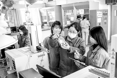 近日,扬子石化质检中心开展系列质量技术攻关,通过实施汽油调和配方优化、缩短丙烯脱甲醇再生时间等措施,实现了熔喷料基础料等7种新产品工业化生产,多项质量指标创历史最好成绩,年累计增效2000余万元。图为扬子石化质检中心芳烃质检人员对汽油调和配方进行分析优化。 李树鹏 耿智强 摄影报道