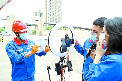 消费者权益日来临之际,广东石油在广州、深圳、中山等5个地市的26座加油站开展公众开放日活动,邀请社会公众走进加油站,讲解油品质量、安全管理和环保新工艺,向公众普及用油常识并进行答疑。图为3月12日,广州石油隔墙加油站员工通过网络直播,向市民讲解加油机除水滤芯材质和作用。黄嘉莉 文 邢伟民 摄