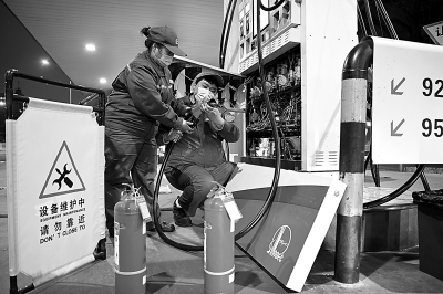3月以来,北京石油紧盯加油站安全监管重点部位,严格执行站长每天1次普检、2次点检,员工2个小时进行1次普检的双重巡检制度,及时发现并消除设备跑冒滴漏隐患,确保加油站安全运行。图为3月5日夜,宣武门加油站员工对加油设施进行安全检查。 本报记者 胡庆明 摄 曹 华 肖 肖文