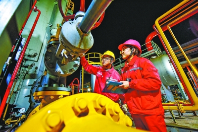 袁 鹏 苏云婷 肖 燕/文 春天,生机勃勃,充满活力。 位于四川省内江市、自贡市境内的西南石油局威荣页岩气田,一系列钻井提速提效技术正在进行,一系列压裂增产新工艺正在运用,一方方天然气正安全输送到千家万户……1500余名建设者抢抓生产有力时机,争分夺秒,加快推进气田建设。 3月3日,在威页28号平台,两口井同时钻进,钻井工人在距离地面约4层楼高的作业平台上,精心操作每道工序。正在跟踪现场钻井情况的威荣页岩气项目部钻完井部主任李辉介绍:“威荣气田采用井工厂钻井模式进行开发,每个平台部署8~10口井,同时采用高效复合钻井、地质导向钻井等配套技术,全力保障气田钻井提速提效。” 据悉,威荣页岩气田平均埋深3750米,是我国首个深层页岩气田,是中国石化重点产能建设项目,通过一系列压裂增产新工艺试验,目前已攻克了一系列科学技术难题,突破埋深3500米~4000米深层页岩气田的开发瓶颈。2020年一期10亿立方米产能建设已全面完成,实现规模高效开发。 3月3日晚7时,集气总站站长吴长春和两名采气工正在进行脱水设备切换工作。此时,站内厨房里的饭菜已经摆放了近两个小时。“集气总站日输气量300多万立方米,来不得半点儿马虎。”晚7时20分,吴长春到监控室观察切换设备运行平稳后,才和同事共进晚餐。吴长春说,忙起来经常没空吃饭,问题解决了,吃得才踏实。 清晨6时30分,天还未亮,威页23号平台集输站班长潘在龙和采气工杨媛已经在站里巡视检查设备运行情况。“这个站是重点站,日产天然气超6万立方米,每隔一个小时便要巡检和录取数据”。他们“24小时营业”,走过每个流程设备需要20分钟,在几个篮球场大小的井站里,当值员工一天要走近两万步。 “今年初,我们气田上了新闻联播,大伙儿看到后特别自豪。”潘在龙所在的班有3个人,原本应该2月轮休,但大家积极响应“就地过年”号召,一直坚守到3月。 目前,威荣气田二期20亿立方米产能建设部署的110口井,已开钻73口。按照计划,2022年威荣页岩气田将全面建成,年产能将达到30亿立方米,相当于1600万个家庭年用气量,对推动成渝地区双城经济圈建设和长江经济带发展意义重大。