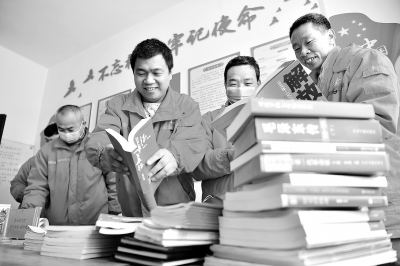 3月以来,中原油田为基层党支部配发党史类书籍,动员各级党组织和广大党员干部以站排头、争第一的精气神,推动党史学习教育在基层抓实落地。图为采油气工程服务中心作业三大队党员争相阅读党史书籍。仝 江 摄