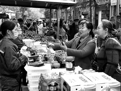 近日,贵州黔东南石油镇远公司开展了“易捷进社区”活动。活动现场,员工向顾客推介易捷商品,并提供送货上门服务。活动当天,洗衣液、大米、牛奶、食用油等商品销售一空,销售额近万元。图为社区居民在购物时拍视频发至朋友圈。魏 伟 摄