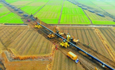 石油工程建设公司江苏油建积极拓展外部市场,截至3月18日,已完成全年国内新签合同额目标的32%。3月中旬,该公司在国家管网滨海LNG项目管道施工中,创下全自动焊接机组日焊接42道口的纪录,领跑项目所有参建单位,树立了良好形象。图为滨海LNG项目自动焊接作业施工现场。林明利 摄 郝明勤 文