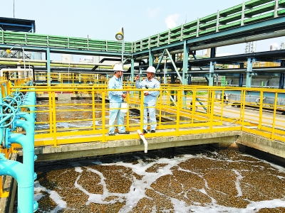 “净化之旅” 给污水“洗澡”——去除油泥浮渣 通常情况下,污水处理系统包含三个部分:污水收集储存系统、污水处理系统和污水回用系统。 污水收集储存系统主要由管网和储罐组成。管网起点为各生产装置的生产污水排出口,收集含油污水、高氨氮污水、含碱污水等,通过管道输送至污水储罐,污水分类后送至处理场,处理洁净后再送到循环水场、消防系统,用于景观绿化、厕所冲污等。 茂名石化污水处理场主要服务炼油生产污水、化工生产污水,覆盖80多套生产装置(每小时污水产生量2300余立方米)。 一滴污水,从炼油化工生产装置“溜”出来,被一台台提升水泵加压送进长长的输送管道,经过在密闭漆黑的管道“长途颠簸”,来到污水处理场又圆又大的调节储罐时,“黑不溜秋”、浑浊不堪的水流中夹杂着大量油泥、浮渣等杂质。 休息一会儿后,污水被高压水泵提升到隔油池、除油器。隔油池将污水中粒径较大的黑色油污分离出来,再进入高效除油器进一步去除细小的石油类物质。 经过两道工序,“瘦身”的污水干净了很多,“身材”消瘦苗条了,但“肤色”仍然是黑乎乎的,还需要经历“美白”净化的过程,方能让它们变得更加清澈靓丽。 于是,它们紧接着被水泵输送至浮选单元,通过与浮选池里的絮凝剂、溶气水相混合,黑色的外衣慢慢被剥离,原来“黑不溜秋”的污水瞬间“脱胎换骨”,变得白净,从一个“黑小伙儿”变成了一个“帅小伙儿”。 给污水“治疗”——去除有机物氨氮 虽然污水清澈了,在人们眼中看似很健康,但水体内仍然含有大量有机物、氨氮和总磷物质,需要进一步接受“治疗”,把这些病灶去除干净。 于是,污水被送进AO生化系统。该系统分为缺氧区、好氧区,污水相继流经缺氧池、好氧池,它们在池中“翩翩起舞”,与微生物“亲密接触”,进行新陈代谢。水体内大部分有机物、氨氮会被微生物吸收,大幅降解。 从外观看,茂名石化污水处理场的AO生化系统由两座1万立方米A池和两座1万立方米O池并联的封闭型大水池组成。其中,缺氧池培养缺氧细菌、兼性细菌,好氧池除投放好氧型微生物外,还有空气压缩机不断向水池中补充氧气。 为了让污水中剩余的有机物、氨氮去除得更干净,达到“再生水”指标,污水又被送到BAF曝气生物滤池。污水在这里通过滤池中的填料,利用池中的曝气氧,与附着在填料中的微生物接触反应,将污水中的有机物、氨氮“清零”。 经过以上几个“旅游点”后,污水虽然已经变得很干净了,但还有一个可恶的“总磷怪”偷偷躲藏在水中。为了把它揪出来,污水又被引至高密沉淀池,人们给水中添加一些三氯化铁、聚丙烯酸胺等化学药剂,吓得“总磷怪”到处逃跑,收到较好的除磷效果。 整个污水处理过程都是在相对密闭的环境中进行,因此除污过程中产生的臭气同时被收集,一部分臭气通过管道被输送到生物除臭系统,通过生物吸附降解臭气中的有毒有害成分;另一部分臭气被输送到催化燃烧系统,通过催化剂作用在高温工况下分解,从而达到除臭目的。 像变戏法一样,暗黑浑浊的污水,经过层层隔油、浮选、生化、过滤,变得干净清澈、晶莹剔透。但此时,这些水还不能直接回用,还有大量肉眼看不到又无法分辨的细菌,需要进一步消毒灭菌。 给污水“消毒”——去除细菌毒素 为了达到消毒杀菌的目的,人们会往水里投加一种名叫“溴代氨基磺酸盐”的杀生剥离药剂。经过灭菌后,曾经“臭名远扬”的污水也改名换姓了,不再被唤作“污水”,而被取名“再生水”,虽然不能直接饮用,但已达到回用和排放标准。 在茂名石化,再生水的用途非常广泛,有的加入循环水场“大军”行列,成为为炼油化工生产“送清凉”的一员;有的被派去消防水系统当了“消防员”,到炼油化工生产最前线站岗放哨;有的自愿去景观绿化区域当“护花使者”,滋润可爱的花花草草;有的则来到“山青水秀”的工业参观点金鱼池,呵护池里的小金鱼自由自在地游来游去。 放眼望去,连接茂名石化污水处理场的那条蜿蜒小河,波光粼粼,像闪着银光的带子。外排再生水经过这条小河源源不断地流向江河湖泊,滋养大自然中的动植物,开启另一段新的“神奇之旅”。 当然,除污的过程中,从污水中分离出来的污泥、浮渣,也得到妥善处理。 从进污水处理场,到再生水回用,一滴污水需要经过3道工序,大约需150个小时,方可“脱胎换骨”。 水乃万物之源。污水重生,来之不易!节约用水,从你我做起。