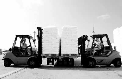 3月下旬以来,福建联合石化紧抓聚烯烃产品畅销契机,扩销PE滑料DFDC7050、PP透明料3240N等市场紧俏产品,加大出厂力度,库存降到历史低点。今年以来,聚烯烃产品累计出厂39万吨,单日最高出厂量达8200吨。图为福建联合石化员工用叉车堆放产品。肖万元 摄