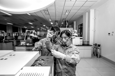 中韩石化化工分析中心严格落实质量管理体系要求,严格规范操作步骤,严把产品质量关,确保为客户提供优质产品。图为化工分析中心操作人员正在进行产品纯度分析。付 松 摄