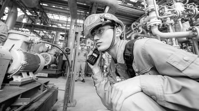 4月15日,镇海炼化举行第5届“最强操作”竞赛。这是镇海炼化历经5年打造的竞赛品牌。新一届竞赛进一步创新优化,进行规定巡检动作、现场发现隐患比拼,有3支代表队获得满分成绩。图为参赛队员查找隐患。钟卫新 摄 卞江岐 文