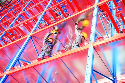 巴陵石化橡胶部5万吨/年热塑橡胶SEBS新装置2月建成投产后,加紧建设配套的立体仓库,目前已进入安装调试阶段,预计5月初建成投用。该仓库占地2900平方米,库容3000吨。届时,新装置两条后处理生产线的成品下线入库,将实现自动化立体存储和发货。图1为施工人员进行安装施工。图2为安全监护员开展高处直接作业监护。 彭 展 摄