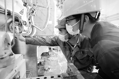 近日, 中韩石化新建30万吨/年PP装置成功产出PPH-T03颗粒料,标志着该装置生产流程已全部打通,正式进入生产优化阶段。该脱瓶颈改造项目的成功改造及投用,进一步优化公司的产品结构,增加了产能。图为 4月25日,工作人员在调试挤压造粒机。付 松 摄 胡军武 文