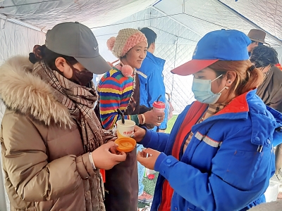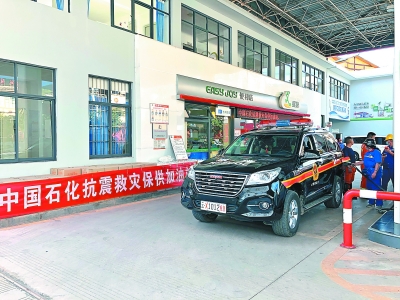 图1:5月22日,云南石油漾濞城区加油站员工为救援车辆加油。胡 伟 摄 图2:5月22日,青海石油亚珠加油站员工为灾区安置点群众送上奶茶。 土 保 摄