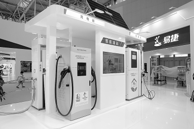 图为世界智能大会上参展的“油气氢电服”综合加能站。