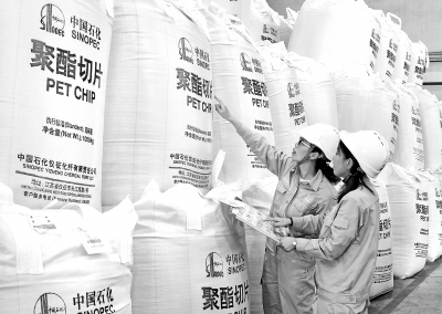 ▲5月20日,江苏太极实业新材料有限公司向仪征化纤公司高模低缩工业丝聚酯切片授予“免检产品”牌,这是仪征化纤首个产品获用户免检授牌。双方表示,要努力成为上下游合作的典范。图为仪征化纤技术人员检查15单元产品情况。刘玉福 摄 翟瑞龙 文