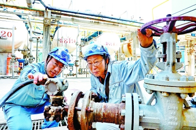 | 九江石化员工现场分析研究工艺。 |