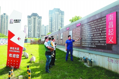 □张 曦 “没想到南昌还有一座这么有特色的加油站,你们的讲解也很生动,下次我带孩子一起来。”4月22日,祥云大道加油站举办红色主题公众开放日活动,许多市民前来“打卡”。自2019年8月1日完成红色主题升级改造后,该站逐渐成为南昌市小有名气的“网红”地标。 近年来,江西石油在全省着力打造红色主题加油站,南昌祥云大道加油站就是其中具有代表性的一座。1927年8月1日,中国共产党武装反抗国民党反动统治的第一枪在南昌打响,祥云大道加油站正是围绕着这段历史进行设计建造的。 做“网红”,我们是认真的 “为了更好地发挥红色主题加油站的作用,我们专门打造了一支宣讲员队伍。”祥云大道加油站站长吴永荣介绍道,南昌石油在全市选拔了10名优秀党员担任红色教育宣讲员。他们利用业余时间来到该站,为前来加油参观的顾客进行讲解。 “我是从小听着南昌起义革命故事长大的。去年初公司选拔义务宣讲员,我第一个报名参加,希望能让更多的人了解这些英烈的光荣事迹。”南昌石油青云谱片区助理付盖嘉是一名90后,去年义务宣讲近百次,服务客户近千人次。 今年“五一”期间,付盖嘉主动放弃休假,担任宣讲员。顾客王女士在祥云大道加油站等待朋友时,又热又急,付盖嘉看到后邀请她参观加油站,耐心讲解南昌起义革命故事。“你可错过了一场精彩的讲解。”朋友到达后,王女士打趣道。 ● 名 称 江西南昌石油祥云大道加油站 ● GPS定位 祥云大道与龙虎山大道交界处,临近南昌西站 ● 特 色 南昌起义红色主题加油站 ● 成 绩 单 2020年汽、柴油销量1.1万余吨 ● 站长吴永荣讲故事: 我们站刚建成时加油量并不大,自建成红色主题加油站后,前来“打卡”的人越来越多,我们一下子成为“网红”。现在,我们还把二楼走廊打造成文化长廊,从早期探索、北伐进军、血雨腥风、伟大决策、风云际会、八一枪声6个方面讲述南昌起义的历史背景,为顾客提供更丰富的历史知识。