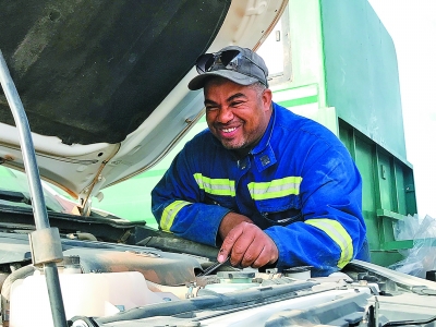 ●许建峰 文/图 在地球物理公司国际业务发展中心阿尔及利亚项目修理车间,SINOPEC311队的队员会时常看见一位身穿满是油渍、汗渍的蓝色工作服的非洲小伙亚辛·朱迪日常忙碌的身影。 24小时随叫随到 “24小时随叫随到,始终处于备战状态,给他安排工作没有一丝怨言。”这是中方机械师李丹对阿籍徒弟朱迪的评价。朱迪1.8米的个头,慈眉善目,为人憨厚,平时笑口常开。 在朱迪的世界里没有下班时间这个概念,哪儿的车有紧急故障,哪儿就有他的身影。 在野外作业现场,故障车不能过夜,否则会影响第二天的施工。有一次,正值撒哈拉沙漠的冬季,夜晚气温降到接近零摄氏度。朱迪在工地忙碌了一天,回到营地正在休息。 凌晨1点多,震源班的一台载人车辆突然出现紧急故障,如果不及时排除,震源班的一组阿籍员工将无法在第二天按时到达指定施工现场作业。中方机械师李丹安排朱迪处理,朱迪二话不说,从床上爬起来,组织阿籍修理工打着灯照着亮,支起吊车,组织吊装车辆变速箱,虽是天寒地冻,豆大的汗珠却不时从他们的额头滴下。 凌晨2时多,营地的保安巡逻到修理车间看到灯火通明,走到朱迪的面前道了一声问候:“你们怎么起得这么早?”当得知大家没有休息,熬夜抢修车辆,保安行了个军礼,对大家的敬业精神表示敬佩。李丹和朱迪等阿籍员工忙碌到凌晨5时多才收工,回屋打了个盹儿,紧接着准备第二天的日常工作。 朱迪的父亲是当地一家修配厂的修理工,他从小在机修车间里长大,跟在父亲身边耳濡目染,从小就认熟了各种工具与零件,经常钻到汽车底下去看父亲修车,抢着为父亲递工具、递零件。他对机械设备充满了好奇,对机电修理产生了浓厚的兴趣。所以,参加工作时,他毫不犹豫地选择了机电修理。 朱迪来SINOPEC311队工作之前,在其他公司工作了一些年头。“我喜欢这里的管理运行模式,学到了其他公司学不到的技术,在这儿我能感受到幸福感和成就感,还能提升我的维修技术。”朱迪谈及SINOPEC工作的经历有些激动。“中方队员对我们就像父亲一样!一次,中国师父看到我的鞋子不合适,就送了我一双他们自己的鞋子。我生病时,中方队员会去帐篷看望我。” 朱迪享受着得天独厚的、一流技术师父的带教与培训,再加上骨子里对机电设备的独特领悟性,他从一名修理工成长为优秀的修理班带班。 “我就要在SINOPEC干下去” 朱迪和其他当地员工一起,见证了中国石化在阿尔及利亚的发展与壮大。 朱迪作为一名修理工,从阿尔及利亚中部老家瓦尔格拉,到东部城市盖尔达耶,再到西部城市谢里夫,跟着SINOPEC一路东奔西走,万里车辙记下了一路故事和深情。 朱迪对中国的工业和城市很感兴趣,时常拿着中国同事发给他的图片给阿籍员工展示,说希望以后有机会去中国看看。 “中国人对我很友善,我就要在SINOPEC干下去,拿到更高的奖金。”朱迪坚定地对自己的中国同事说道。