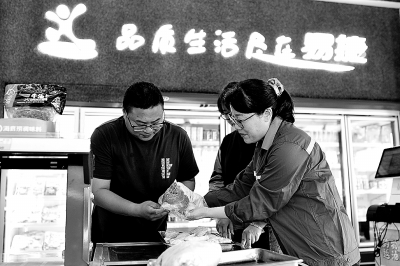 近日,江苏徐州石油在加油站引进生鲜业务,提升顾客消费体验,带动效益增长。图为新沂八加油站员工帮助顾客选购生鲜商品。李 莉 摄 王 蕾 文