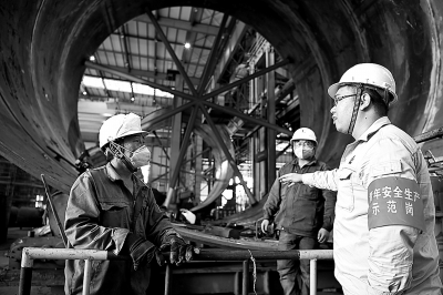宁波工程公司开展“啄木鸟行动”,不断增强员工在作业现场的安全意识并提高其技能水平,营造全员参与安全管理的良好氛围。 图为6月29日,宁波天翼制造公司安全“啄木鸟”在施工现场进行安全提示。胡庆明 摄 何忠旭 文