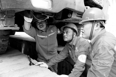 针对夏季施工风险特征,河南油田油服中心特车大队严格按照“一日三检”制度,围绕“人、机、环、管、物”,全过程排查人的不安全行为、物的不安全状态、环境的不安全因素,发现问题及时采取措施,消除安全隐患。图为6月30日,特车大队TC101队队长贾中辉(左)和员工一起对车辆进行逐台检查。鲁海涛 摄