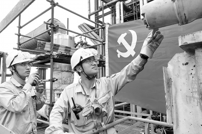 | 党员奋战在装置现场攻关解决难题。 柯裕清 摄 |