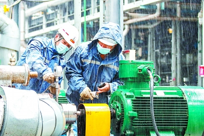 7月11日至12日,北京市迎来今年入汛以来最强降雨,平均降雨量达到暴雨级别。北京石油、燕山石化等驻京企业立即启动应急预案,严格执行24小时值守,加大设备巡检力度,确保安全生产万无一失。截至目前,各生产装置和站库运行良好,未出现设备受损和相关事故。图为7月12日,燕山石化合成橡胶厂员工检查重点机泵运行情况。 李 雪 摄 赵书萱 肖建国 杨奎宁 于 慧文