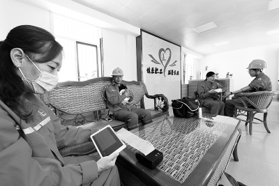 今年以来,胜利油田河口采油厂积极推进“十件实事”进程,为70多个注采站及集输班站配备了健康查体医疗设备设施,对员工进行相关医疗知识培训,切实保障员工健康权益,深受一线员工欢迎。图为7月初,员工利用午休时间进行测心电图、量血压等常规性检查。吴木水 摄 张 蕾 文
