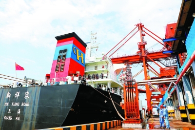 上海石化码头6号泊位船舶靠岸减排项目于3月投用。截至目前,靠泊货船用电超12万千瓦时,减少船用柴油消耗20多吨。这是系统内首个船舶靠岸减排项目,通过岸电设施为船舶提供用电。船方接上岸电设施后,可替代自有柴油发电机,有效降低成本,减少噪声和排放。图为员工检查岸电设施。吴 伟 摄