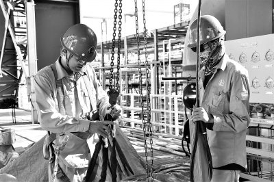 7月以来,炼化工程十建公司承建的古雷炼化一体化80万吨/年乙烯项目持续加大风险隐患排查力度,聚焦乙烯装置压缩机组试车、设备气密、管道吹扫等12项关键施工作业环节,加大施工作业票管理力度,对动火、起重吊装等作业施工进行全方位、立体化管控,先后开展106次风险隐患排查,隐患整改率达100%。图为近日安全管理人员对乙烯装置施工区域进行隐患排查。 田元武 摄