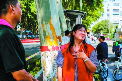 | 看着奋力抢险的队员,新乡市铁路高级中学副校长李虹婵(右)抑制不住内心的感动。 |