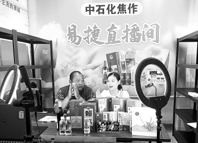 7月21日,河南焦作石油开展专场直播助力抗汛保供,将饮料、矿泉水、尾气处理液等多种易捷商品进行线上销售。直播中主播向观众介绍了当地中国石化保供加油站站点信息,助力抗洪抢险,保障用油。1小时的直播实现销售4.7万元。图为直播带货助力抗汛保供活动现场。王 霞 摄