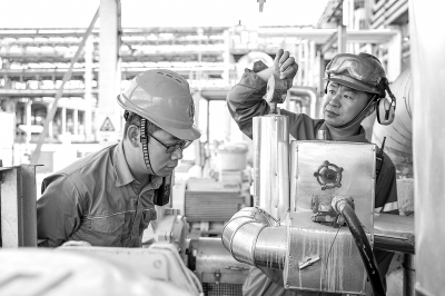 7月27日,青岛炼化首批5000吨低硫重质船燃,成功管输至红星物流罐区。该公司充分调研市场,在生产设施改造、调和方案、出厂和计量交接等关键环节发力,确保了首批低硫重质船燃一次生产调和成功,为优化产品结构、持续提质增效打下坚实基础,为中国石化在青岛口岸打造北方船供油基地助力。图为员工对出厂泵的运行参数进行检查。何继强 摄