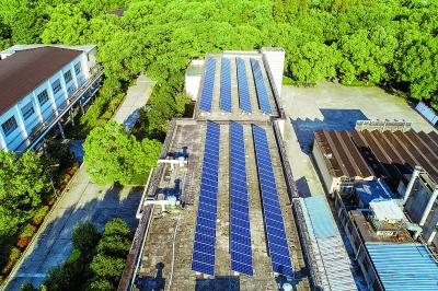 7月28日,湖北化肥公司办公楼屋顶110千瓦光伏电站二期项目投运。至此,该公司年绿电发电量达15.3万千瓦时,可节省标煤19吨、减排二氧化碳143吨。图为生产区办公楼屋顶的光伏电站项目。李先忠 摄