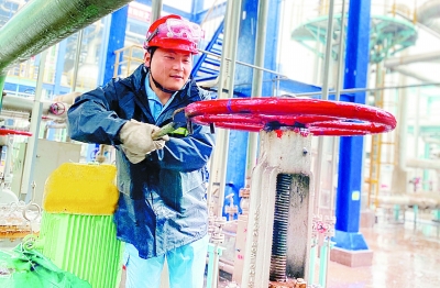 近日,南化公司增加重点生产设备巡检频次,实行24小时值守,及时进行工艺监控调节,确保安全稳定生产。截至目前,南化公司生产区域无内涝情况。图为南化公司员工进行现场工艺调节。裴 昱 摄