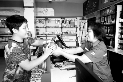 7月19日以来,河南新乡地区遭遇强降雨,部分区域物流受阻,部分生活用品供应一度紧张。新乡石油采取多种措施,发挥中央仓的快速补货作用,保证易捷便利店商品充足供应,保证商品质优量足不涨价,保障生活必需品的快速补进,受到当地群众好评。图为7月25日,顾客在新乡市内金穗南加油站购买商品。薛宝泉 摄