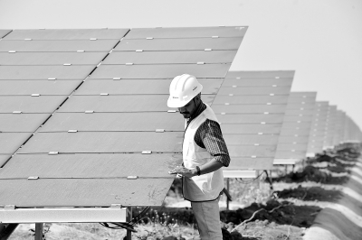 美国银行印度分行总经理高拉夫·辛格哈尔称,2030年前,印度可再生能源产业投资可能达到1500亿美元。日本软银集团日前把可再生能源业务以35亿美元的价格出售给印度阿达尼绿色能源公司。后者表示,这笔交易将助其提前实现装机容量为25吉瓦的可再生能源投资组合目标。印度可再生能源发电能力过去十年大幅增长,目前为142吉瓦,占印度总发电能力的37%。图为印度太阳能园Shakti Sthala一期工程。视觉中国 供图