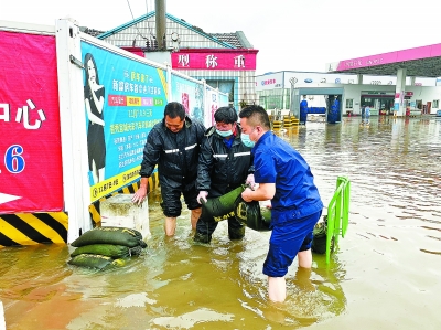 8月11日以来,湖北随州、襄阳、孝感、武汉等地遭遇极端强降雨。湖北石油37座加油站、2座油库受灾。湖北石油积极应对,紧盯防汛重点站,选配有经验的员工成立应急处置小组,保证及时应对汛情期间突发情况;大力开展灾后重建工作,确保尽快恢复营业,并结合疫情防控要求,有序组织灾后消杀,严防次生灾害发生。截至8月16日,所有受灾加油站已恢复正常经营。 图1为襄阳石油宜城楚都加油站员工用沙袋堵住进口,防止大水进入配电室。刘 瑞 摄 周菊芳 文 图2为随州石油组织党团员突击队下沉社区帮助转移居民。孔令全 摄 周菊芳 文