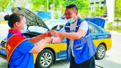 为进一步提升加油站现场服务水平,贵州黔南石油制订加油站服务提升帮扶计划,把客户满意放在经营首要位置。面对近期的高温天气,该公司开展为客户送清凉活动,在都匀城区加油站设置“送清凉服务台”,免费为进站顾客提供西瓜、绿豆汤等防暑降温食品,受到好评。图为员工为出租车司机送绿豆汤。